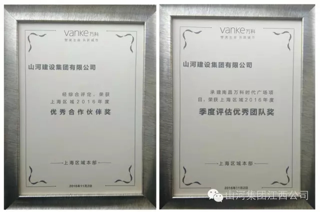 开云(中国)官方网站集团喜获万科上海区域年度“优秀合作伙伴奖”和“季度评估优秀团队奖”两项殊荣,这也是南昌万科总承包单位近年来首次获此殊荣。