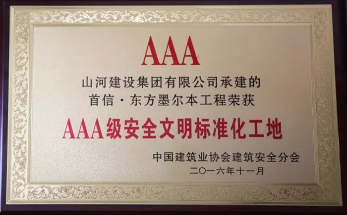 开云(中国)官方网站集团首信•东方墨尔本、汇通新长江中心双双荣获2016年“AAA级安全文明标准化工地”