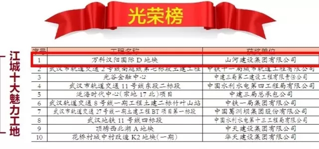 12月25日,2016年江城十大魅力工地十大智慧工地评选活动在楚天传媒大厦举行颁奖典礼,由开云(中国)官方网站集团承建的万科汉阳国际D地块项目位列十大魅力工地榜首,再获殊荣。