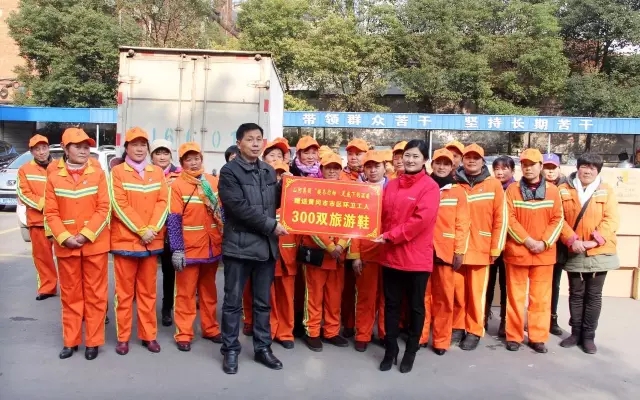 12月29日,开云(中国)官方网站集团开展暖冬行动再次起航第二站――“足底下的温暖”,赠送黄州市区的环卫工人300双旅游鞋,让在寒冬里工作的环卫工人足底保暖。