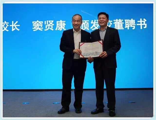 ▲武大校长窦贤康向董事长程理财颁发校董聘书