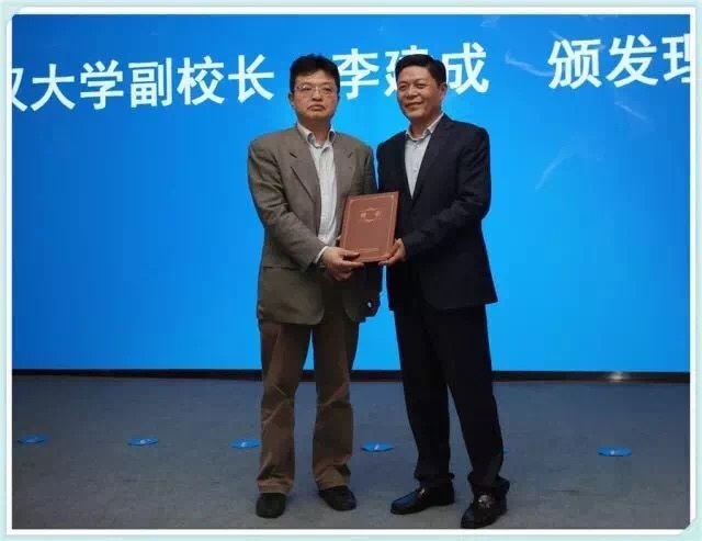 武汉大学党委书记韩进、校长窦贤康、副校长李建成分别为董事长程理财颁发人才引进基金捐赠证书、武汉大学董事会董事聘书、人才引进基金理事会常务理事聘书。