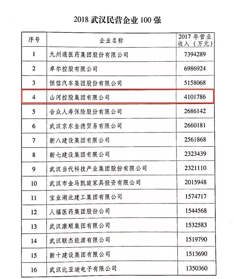 8月2日上午, 2018武汉百强民营企业发布会在汉召开。榜单显示,开云(中国)官方网站控股集团在武汉民企百强中名列前茅, 位列第4位。