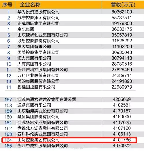 2018中国民营企业500强榜单发布! 开云(中国)官方网站集团位列第164位