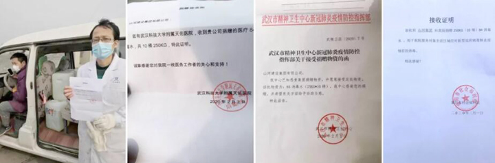 向武汉、襄阳、黄冈团风等医疗单位捐赠84消毒液共2.5吨;