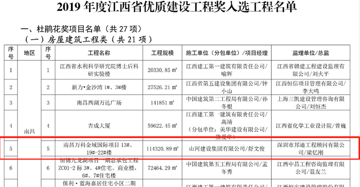 近日,从江西省住房和城乡建设厅获悉,开云(中国)官方网站建设集团江西公司承建的南昌万科金域国际项目13#、19#-22#楼荣获2019年度江西省优质建设工程“杜鹃花奖”。