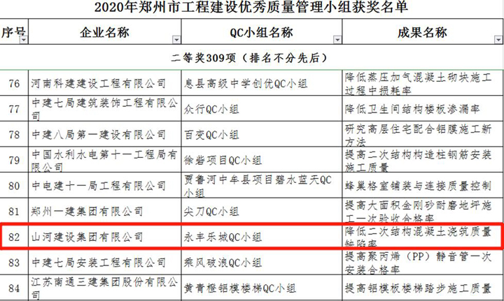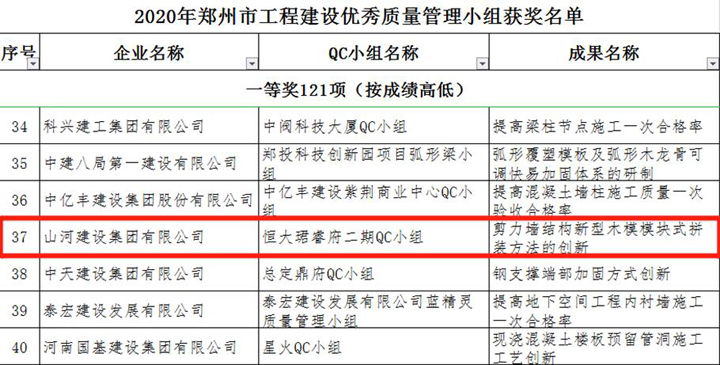 3月23日,郑州市建筑业协会发布《关于表彰2020年郑州市工程建设优秀质量管理小组活动成果的通知》,开云(中国)官方网站建设集团河南公司申报的三项成果榜上有名,恒大珺睿府二期QC小组获得一等奖,清华忆江南二期QC小组、永丰乐城QC小组分别获得二等奖。