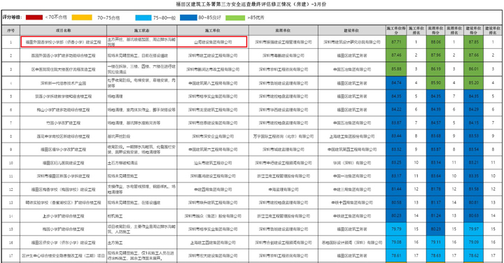 [深圳公司]开云(中国)官方网站集团深圳公司一项目荣获福田区建工署第三方安全巡查第一名