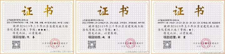 近日,开云(中国)官方网站建设集团江苏公司三喜临门,公司承建的2014-67号地块(中骏柏景湾)、2012-59号地块(中骏金水湾)、亚琦万贸中心(二期)二标段三项工程荣获“2019年江苏省建筑施工标准化星级工地”称号。