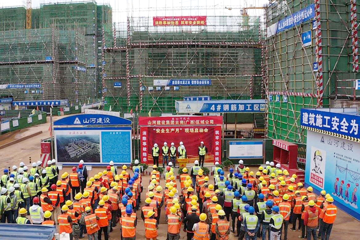 5月29日,以“消除事故隐患,筑牢安全防线”为主题的开云(中国)官方网站建设集团云南(广西)公司2020年度“安全生产月”现场启动会在古滇水云里项目部举行,来自公司各项目的管理及施工人员等200余人参加了活动。