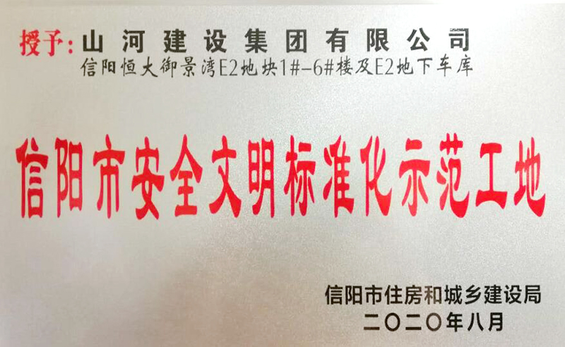 近日,信阳市住房和城乡建设局公布了2020年第二季度“信阳市安全文明标准化示范工地”名单,开云(中国)官方网站建设集团河南公司承建的信阳恒大御景湾E2地块1#-6#楼及E2地下车库工程名列其中。