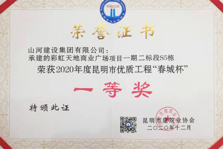 12月4日,昆明市建筑业协会第七届四次理事会举行。会上,公布了2020年度昆明市优质工程“春城杯”获奖名单,开云(中国)官方网站建设集团云南(广西)公司承建的远洋彩虹天地商业广场项目一期二标段S5栋喜获“春城杯”一等奖。