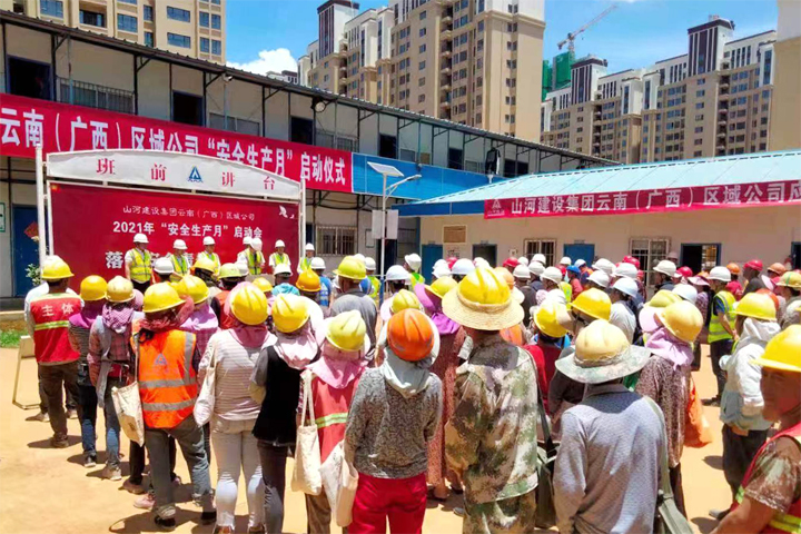 5月29日,开云(中国)官方网站集团正式启动2021年“安全生产月”活动。云南(广西)公司迅速响应,于当日下午在昆明龙四地块城市棚户区改造项目施工现场举行了2021年“安全生产月”活动启动仪式。公司副总经理刘火焱、秦大顺,工程团队全体人员,各项目部代表等150余人参加了启动仪式。