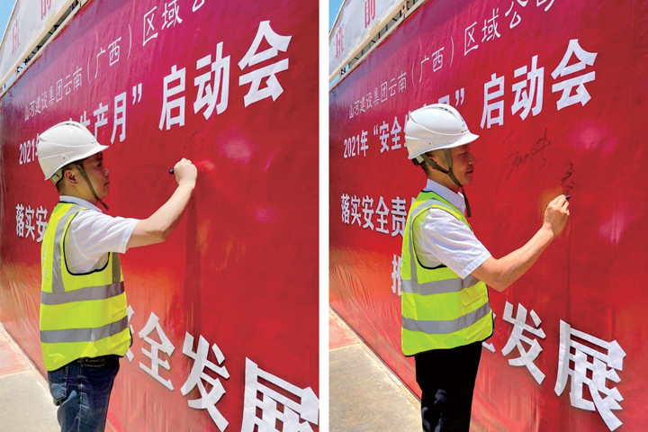 启动仪式上,全体人员庄严宣誓,大声说出“告别违章从我做起”的誓词,一字一句铿锵有力,表达了抓好安全生产的信心和决心。随后,大家在启动仪式背景墙上签名,承诺切实履行安全生产主体责任,把责任记在心上,扛在肩上,落实在行动上。