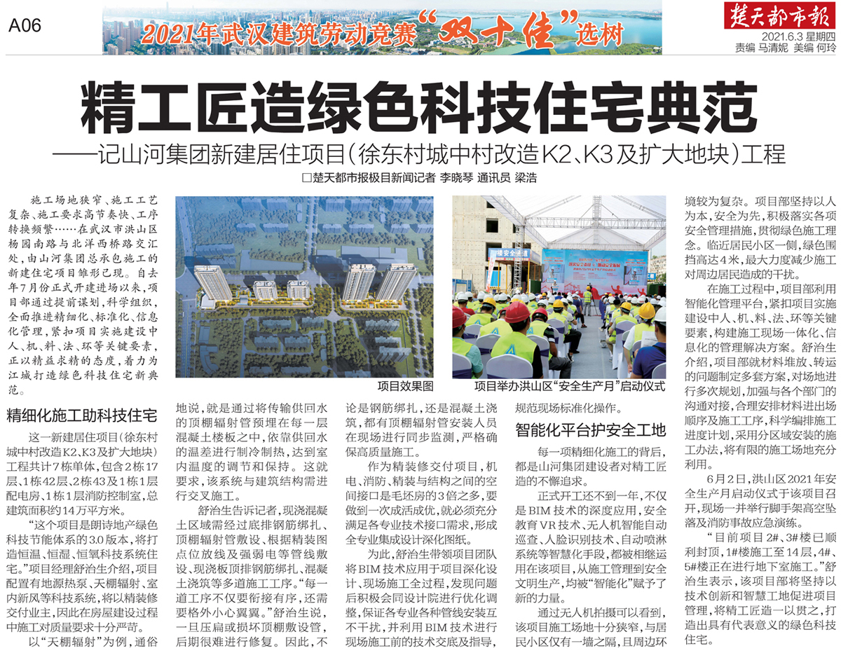 6月2日,洪山区2021年安全生产月启动仪式于该项目召开,现场一并举行脚手架高空坠落及消防事故应急演练。
