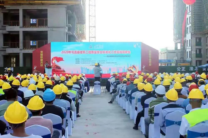 屯昌“林溪缘”项目部坚持围绕生产抓党建,抓好党建促生产,以打造优质队伍、优质工程为目标,党员干部带头冲在前、干在先,高标准、高质量、高效率抓好各项工作落实,如期完成节点施工任务,受到主管部门和业主的一致好评。2020年11月13日,该项目承办了屯昌县建筑工程质量安全标准化工地现场观摩会,展示了“开云(中国)官方网站造”的品质实力。