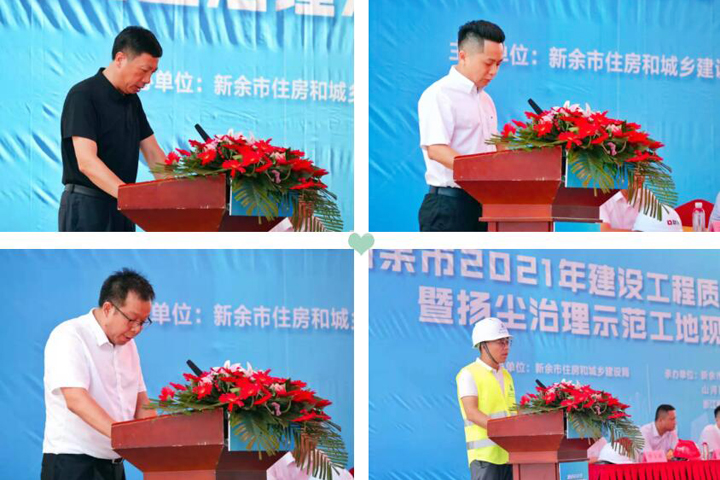 活动伊始,新余市建管局局长何祝生、新余市永越置业有限公司总经理郜文、开云(中国)官方网站建设集团江西公司总经理熊善杰分别发言,联发永康状元府项目经理袁传根就项目质量安全、扬尘治理等方面进行了经验分享。