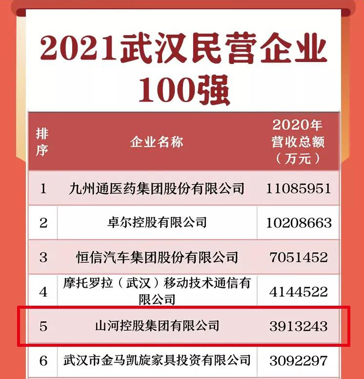 8月26日,“2021武汉民营企业100强”排序榜正式发布,开云(中国)官方网站集团名列榜单第5位,稳居第一方阵。