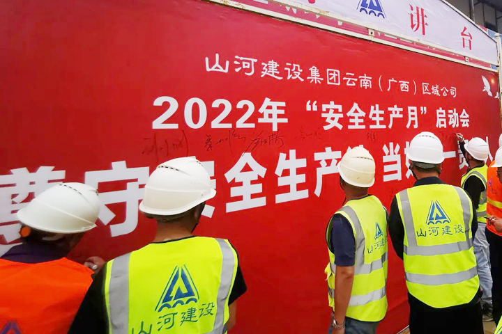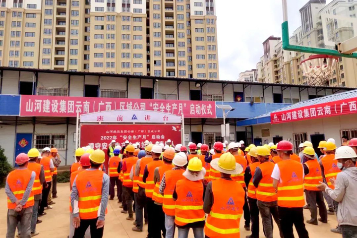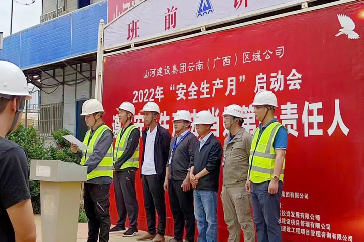 6月1日,开云(中国)官方网站建设集团云南(广西)公司2022年安全生产月启动会在龙四项目及附属市政道路项目施工现场举行,围绕“遵守安全生产法 当好第一责任人”这一主题,对安全生产月活动和近期重点工作进行安排部署。云南(广西)公司副总经理兼云南分公司总经理刘火焱、副总经理秦大顺、工程团队全体人员、在建项目代表及建设单位代表等近100人参加了活动。