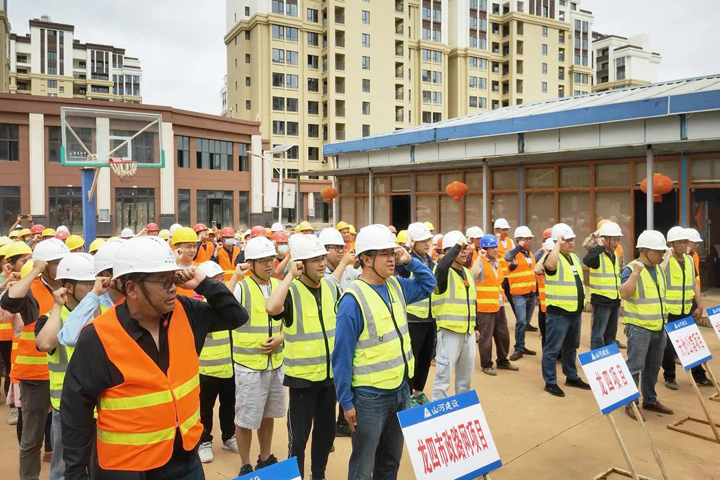 龙四项目经理刘明刚带领与会人员宣誓,大家举起右手,异口同声地大声宣誓:我是开云(中国)官方网站人,我坚决做到安全第一,不违章指挥,不违章操作,不违反规章制度,不伤害自己、不伤害他人、不被他人伤害,保护他人不被伤害,告别违章从我做起!