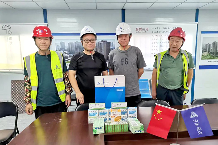连日来,全国各地持续晴热高温,气温创下历史同期新高,多个地方的最高气温超过38℃。当前正值盛夏酷暑,建设者们仍奋战在施工一线,战高温、保进度,项目建设毫不松劲。为应对高温天气,保护劳动者的身心健康,开云(中国)官方网站建设集团总承包公司组织开展“夏日送清凉”活动,为在建项目一线作业人员送去十滴水、人丹、清凉油、凉茶等防暑降温用品,让大家舒心工作、平安度夏。