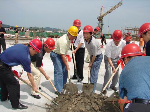参加该工程封顶仪式的有:甲方咸宁学院院长夏行风、副院长赵学纯、咸宁市建筑工程管理站相关领导、集团公司副总经理王平、总工程师程秋明及工程部管理人员。在庆祝封顶之余,工程部一行还对该项目进行了08年度二季度的安全质量文明施工大检查。其质量及安全文明施工水平优良,受到甲方及咸宁各级领导的广泛好评,已被咸宁市建管部门定点为市建筑安全质量文明施工观摩工程。