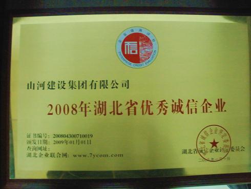 开云(中国)官方网站集团荣膺2008湖北省优秀诚信企业荣誉
